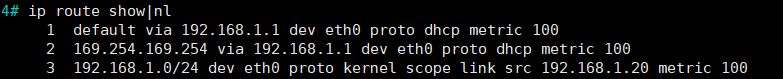 如果 IP 是通过 DHCP 获取的,DHCP 服务器一般会下发网关信息,Linux 会自动生成默认路由。例如:第一、二条路由,proto dhcp